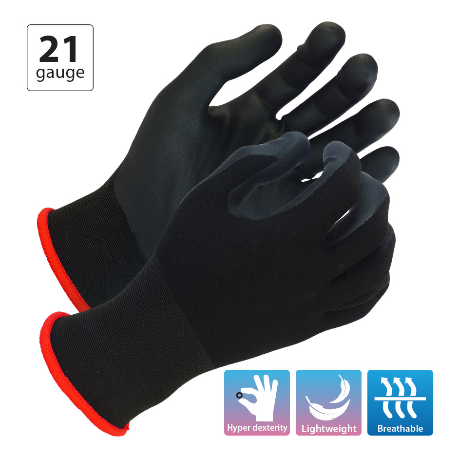 GWUF-1412D (AERO-SLIM™)gloveway2025-09-25T15:15:48+09:00 GWUF-1412D (AERO-SLIM™)18gauge blue Nylon / Spandex liner blue SUPREMAX FOAM™ Nitrile palm coated gloves Standards Featuring 18 gauge construction delivers highly touch-sensitive Palm coated with Nitrile dots Ultra-thin and lightweight, Hyper dexterity & comfort Superb breathability, intense abrasion Aeroventilated non slip, supreme grip, Efficient launderability Touch screen available (some smart devices) OEKO-TEX® Standard 100 Area of Application Applications Micro-electronics, Micro-engineering Handling small metal parts & plastic components Light fabrication, Quality inspection Automotive components, Aerospace industry Packaging, logistics and warehousing Household, farm or garden work Size Size Length 7/S 220mm 8/M 230mm 9/ L 240mm 10 / XL 250mm 11 / XXL 260mm Request a Sample or CatalogComplete the form to request product samples or a catalog ContactRelated Products SUF-263BPRODUCTS, Global Products, 01_General Purpose SB-203PRODUCTS, Global Products, 01_Eco-Friendly, 01_General Purpose SBC-203PRODUCTS, Global Products, 01_Eco-Friendly, 01_General Purpose SG-263APRODUCTS, Global Products, 01_General Purpose