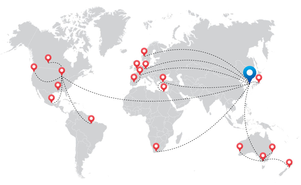 - Hauptexportmärkte: Europa, Nordamerika, Südamerika, Ozeanien und weitere — Export an etwa 35 Unternehmen in 15 Ländern