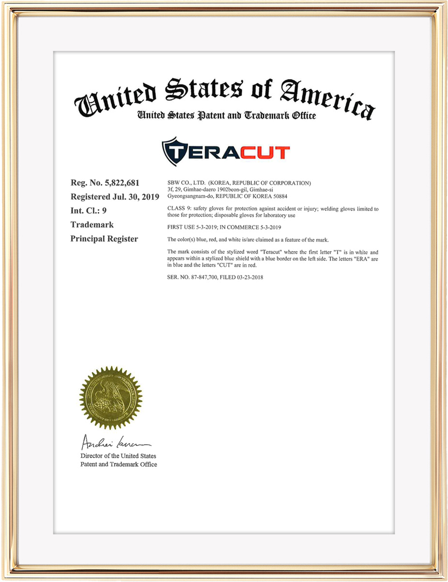 ㈜에스비더블유가 보유한 브랜드 장갑의 법칙®, GLOVEWAY®, TERACUT®는 한국, 일본, 미국 등 주요 글로벌 시장에서 상표권을 등록하여 법적으로 보호받고 있습니다. 이러한 글로벌 상표 보호는 각 브랜드의 무결성과 지식재산권을 안전하게 지키며, 전 세계 파트너와 고객에게 신뢰할 수 있는 브랜드 가치를 제공합니다.
